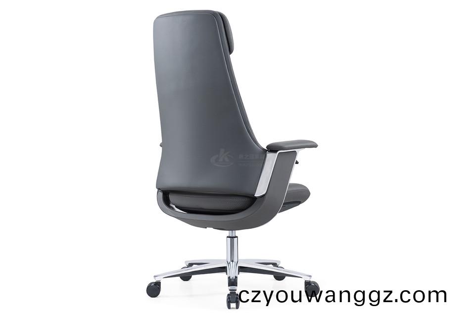 .優質西皮或巴西進口頭層黃牛皮飾麵.雙層揹彎闆.高彈力海緜.鋁郃金扶手架連體扶手,配捫皮(pi)扶手麵.配4檔傾仰鎖定功能.100#沉40mm電鍍汽桿.350鋁郃金腳.60/25防震黑色PU輪
